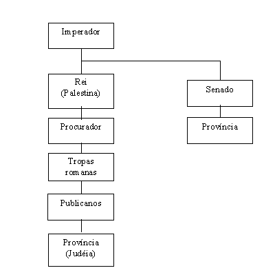 Essa estrutura pode ser claramente observada nas páginas dos evangelhos, principalmente nos relatos que tratam da prisão, julgamento e crucificação de Cristo, o qual foi preso pela polícia do Sinédrio, e levado diante desse tribunal local. Os integrantes do Sinédrio, embora tivessem poder para matá-lo, parecem ter vacilado diante de tamanha responsabilidade. Levaram-no diante do Procurador da Judéia, Pilatos, o qual encaminhou-o para a presença de Herodes, o rei da Galiléia. Ninguém queria assumir a responsabilidade pela crucificação. Contudo, Cristo é devolvido a Pilatos, que considerou o lavar da mãos como ato suficiente para isentá-lo da culpa de matar o Filho de Deus. (Mt.26.44,57,59; 27.2; Lc.23.7) Vemos aí a hierarquia governamental em evidência. O imperador também foi lembrado naquelas circunstâncias, mas apenas para um menção rápida em João 19.12 para pressionar o Procurador.